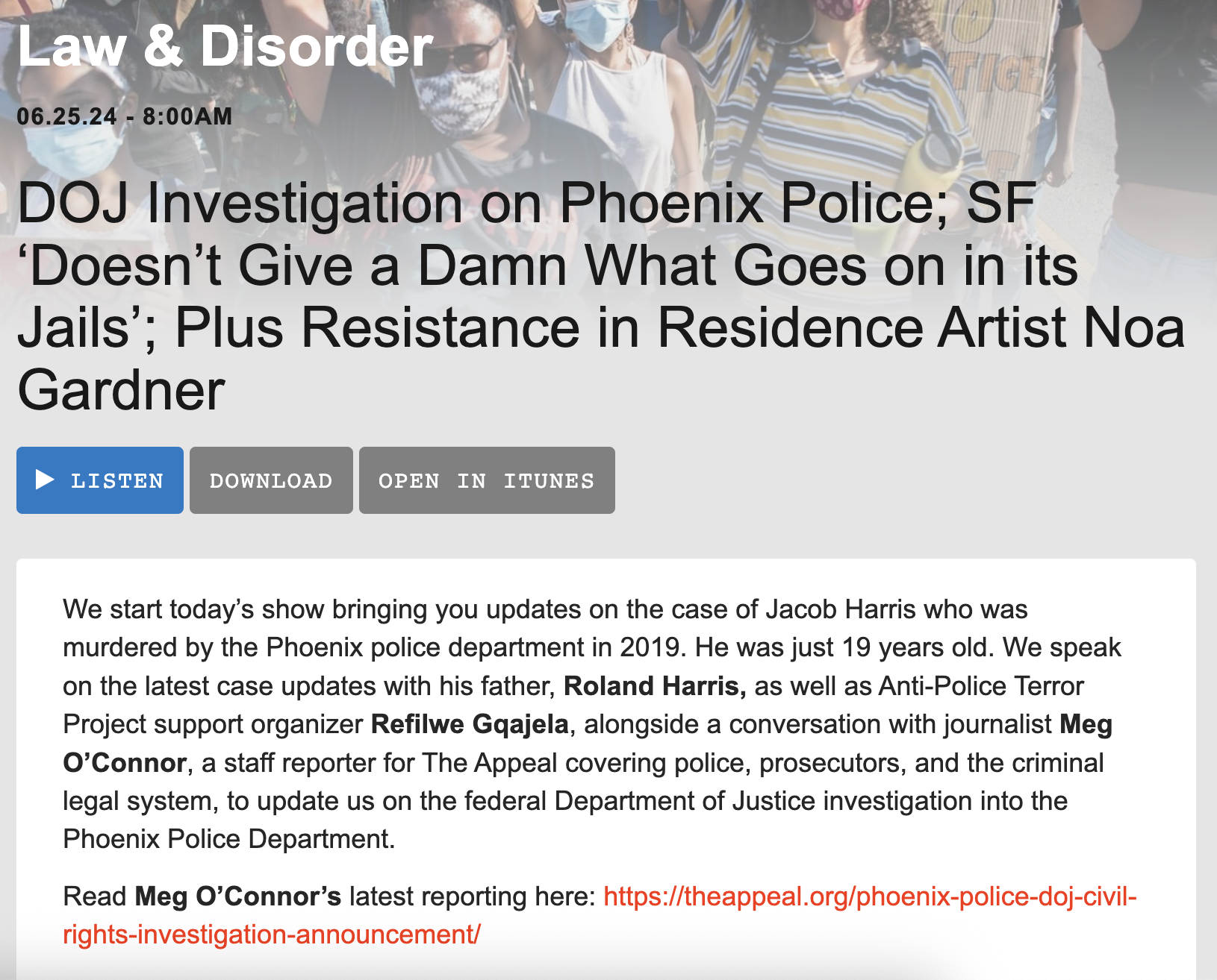 Appeared on Law & Disorder with Cat Brooks to discuss the Department of Justice investigation into the Phoenix Police Department